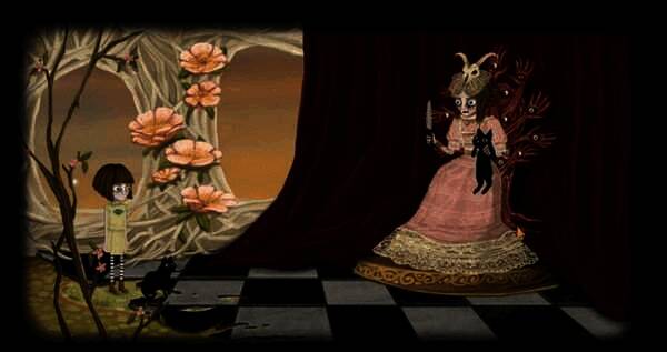 5. 耀眼的背景色、诡异的游戏音乐以及女孩的凝视,营造出寒冷恐惧的氛围。
