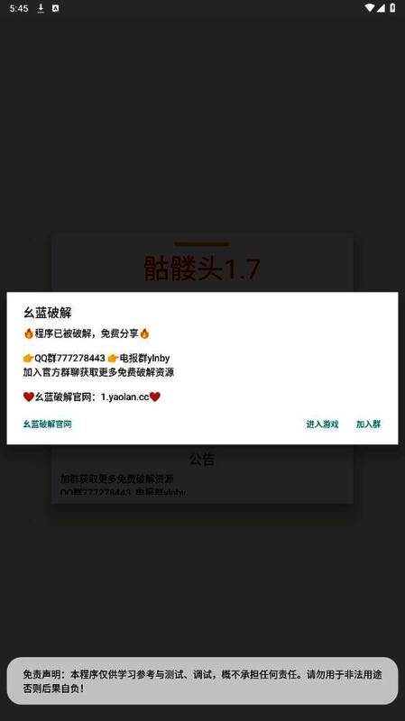 1. 打开骷髅头直装,点击开启悬浮窗权限。