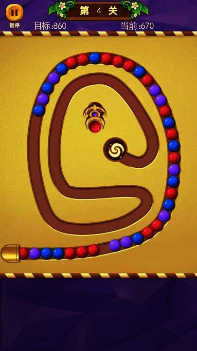 1、关卡目标:在每个关卡中,玩家要清除下方的泡泡链,防止泡泡到达底部危险线;
