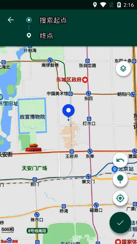 在地图中找到想模拟的位置后,点击右下角的【√】按钮;