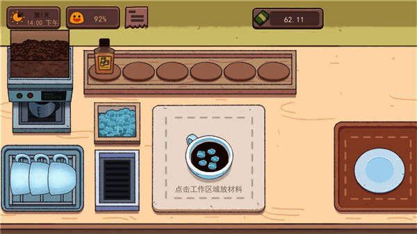 - 玩家先在前台接收订单,再回生产室煮咖啡,最后交给顾客完成交易。