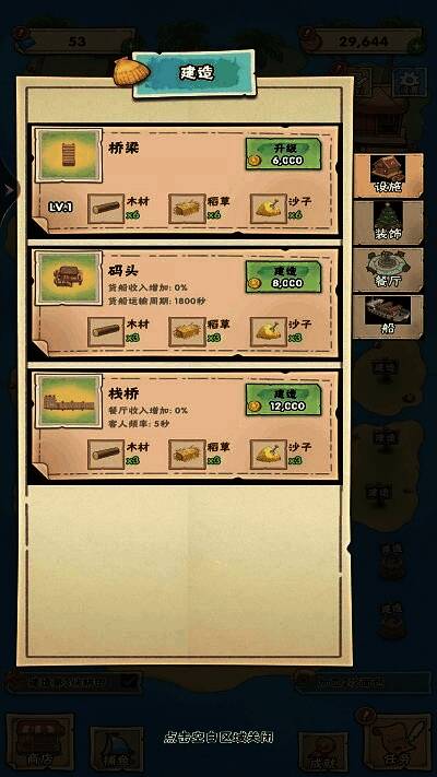 游戏设有多种任务系统,玩家完成任务和目标可解锁新区域、建筑和设备,推动岛屿扩展。不同季节和天气会影响岛屿生产和游客需求,玩家需灵活应对环境变化。玩家能自由自定义岛屿装饰和布局,从家具到景观都可随心设计,打造专属海岛。丰富的事件和活动系统,如限时活动、节日庆典等,玩家参与可赢取稀有资源和奖励,增添游戏趣味性。
