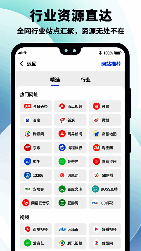 打开软件,主页上方有地址栏和搜索栏。在搜索栏输入想搜索的关键词,点击搜索即可搜索所需内容。它内置百度、搜狗、头条、必应和 360 搜索,用户可依自身搜索习惯选择熟悉的搜索引擎进行搜索。