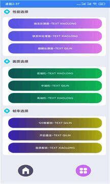 这是一款支持帧率、画质和性能修改的移动软件,可适配低、中、高端设备。使用便捷,选好型号一键修改。多种性能、画质、帧率可选,还有如160广角、170广角等强大一键应用功能。