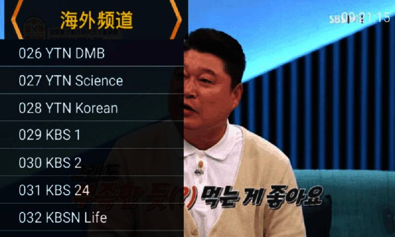 3、点击屏幕左半部分,会弹出节目选择列表。用左右箭头选择类别,上下滑动选择节目或频道。