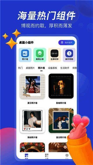 2. 图像小部件:有简单图片和多样漂亮照片墙模板供选,在桌面放置自定义照片,轻松打造个性化桌面。