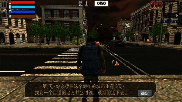 1、玩家初始为乞丐,通过向行人乞讨、翻找垃圾桶等方式维持生计。