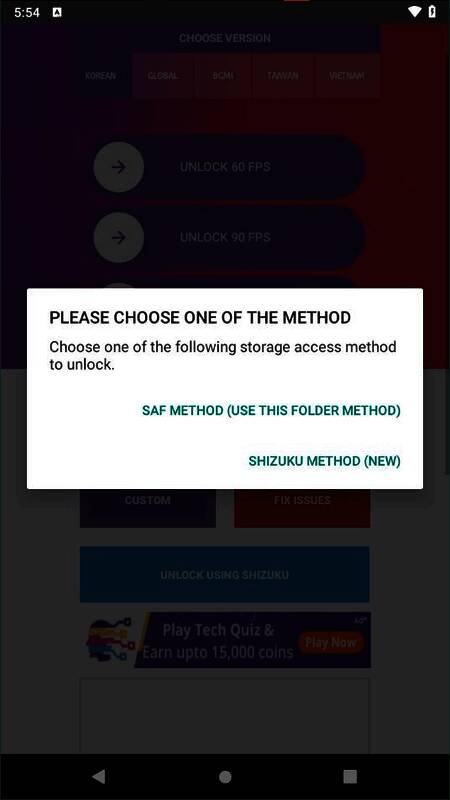 若要在运行低于android 11的设备上解锁90 FPS,只需允许相关权限,然后点击解锁90 fps按钮即可。