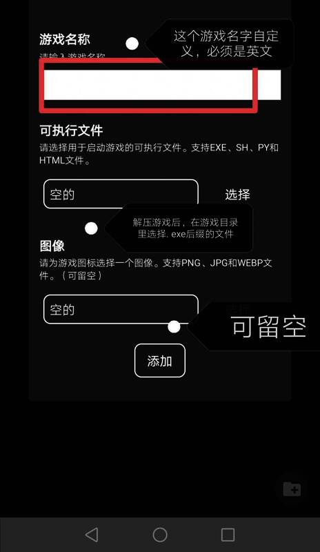 4、Icon可留空或选择喜欢的图片,点击ADD完成添加,此时能在APP界面看到添加的游戏,点击图标即可打开。