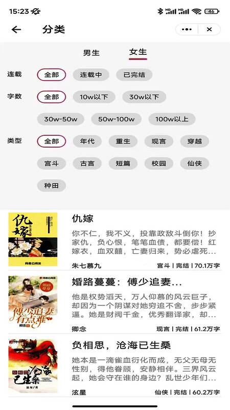 2、整合了全网小说资源,用户能在此找到各种类型的小说。