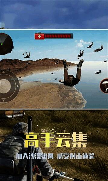 沙漠雄鹰游戏是一款扣人心弦的大逃杀射击游戏。玩家置身广袤沙漠战场,为生存与胜利而战。在这危机四伏的沙漠中,需和对手激烈对抗,收集各类武器与资源,提升战斗能力,成为最终幸存者。战斗既考验射击技巧,也考验战略与生存智慧。在不断缩小的战斗区域里,玩家要时刻警惕敌人,合理利用地形作战。