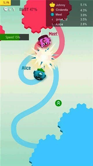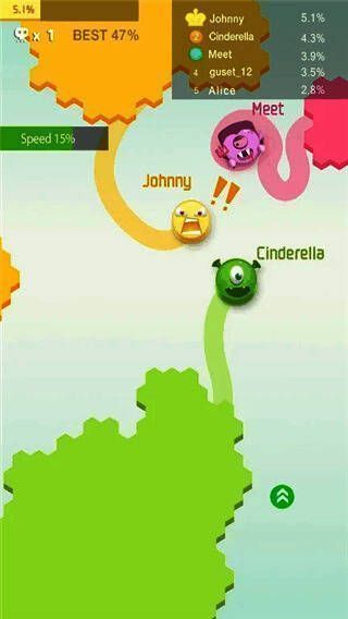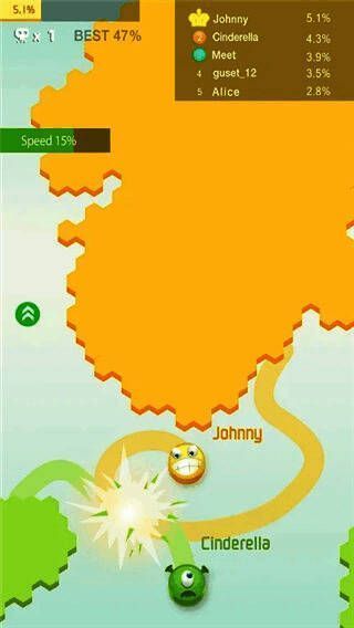 2、圈地为王策略:玩家控制小圈子吞噬地图资源,战略性规划行动路线,智胜对手成为圈地之王。