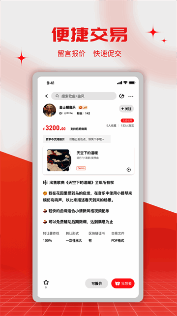3、支持按歌名或艺人精准搜索,用户可自由选择并收听心仪音乐作品,发现更多美妙旋律。
