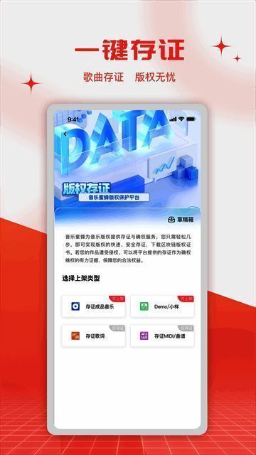 4. 根据需要上传视频,制作歌曲画面后点击右上角存证按钮即可。