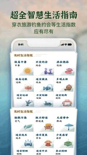 - 提供生活指数功能,包括紫外线指数、洗车指数、出行指数等,助力生活安排。
