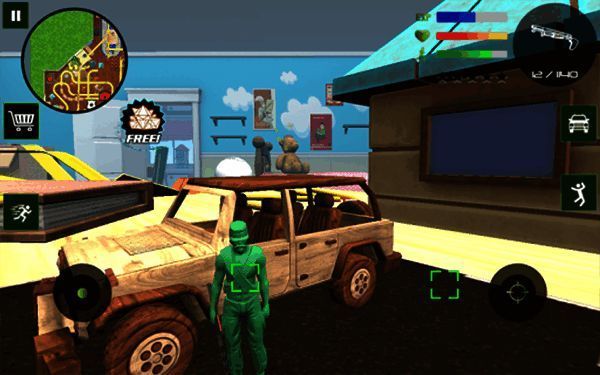 陆军玩具城是一款精彩的动作射击类游戏。游戏中,玩家化身为绿色士兵,在玩具城镇里战斗求生,为玩具兵建造王国不断收集资源。完成任务可获金币、经验,用于购买武器装备、升级技能。