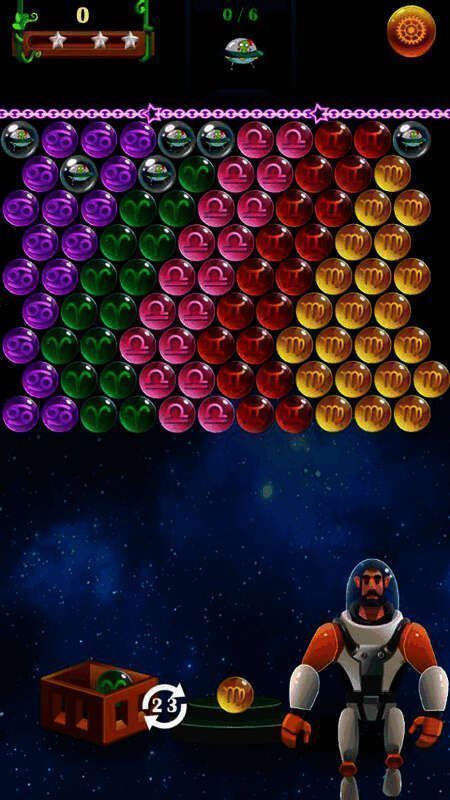 游戏包含多个星座主题关卡,每关有不同泡泡组合和独特任务目标。