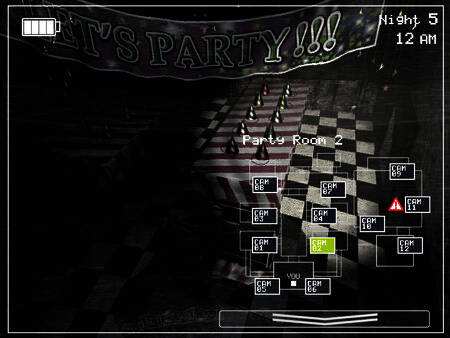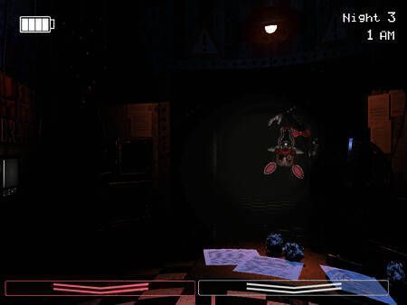 1. 画面左上角的电池图案代表剩余电量,使用灯光和手电会消耗电量,需留意使用量,防止玩具攻击时无法抵抗,第二晚电量会自动恢复满格。