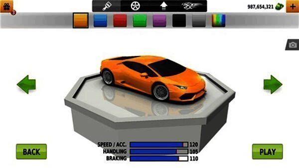 7. 能为各类汽车定制颜色和车轮,通过收集或购买蓝图解锁汽车。