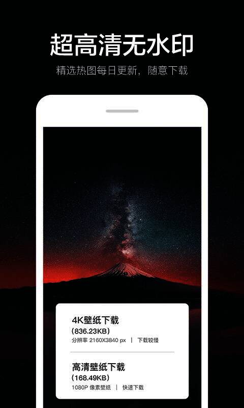 “指尖4K壁纸”拥有超过一万张高清壁纸资源,涵盖风景、动漫、明星、科技等多个主题分类,满足不同用户的个性化需求。所有壁纸均经过精心筛选,画质细腻无水印,并且每天持续更新,保证用户总能发现新鲜内容。