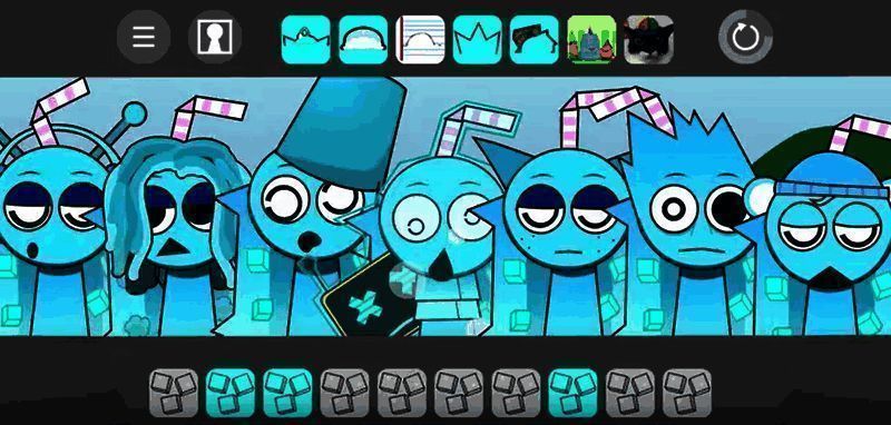 在玩法上,《节奏盒子冰块妹妹》提供了多种有趣的互动机制。例如,玩家可以将麦克风、音箱等道具拖拽至角色身上,触发专属音效,不同组合可生成千变万化的音乐片段。此外,长按角色可单独播放音色,点击静音则能调整声部层次,多角色协作可实现复杂编曲。