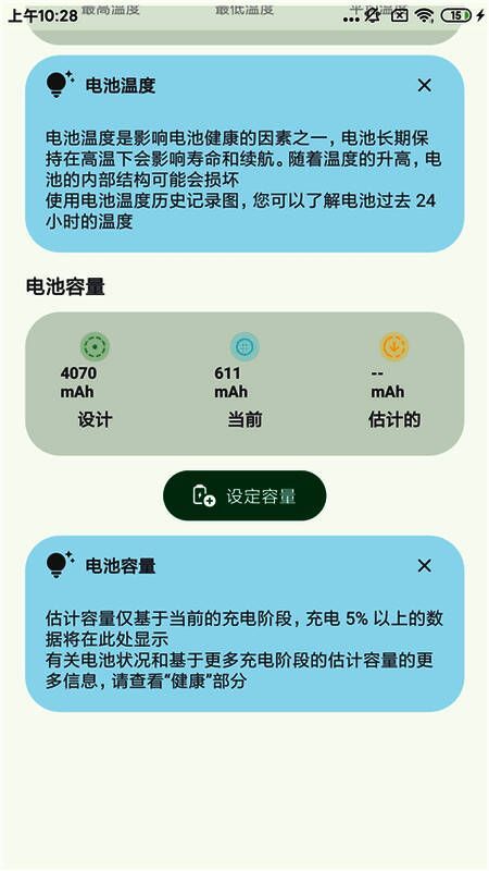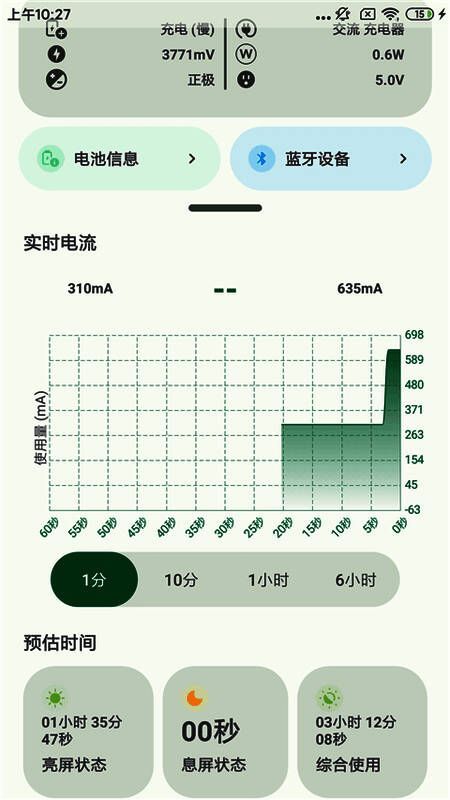 该软件能够对电池进行全方位检测,实时呈现电池容量、充放电循环次数、当前电压与温度等关键参数。用户可通过直观界面查看电池损耗情况,并获得基于使用习惯定制的电池管理方案。此外,它支持测量充电时的最大电流(单位:mA),帮助用户识别最佳充电组合,如快速充电器与优质USB线缆,从而提升充电效率。