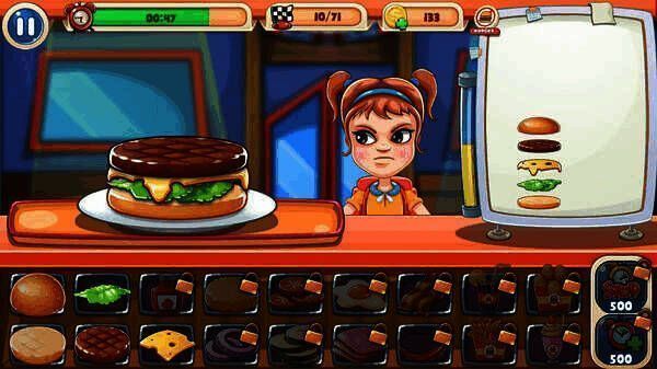 4、与其他玩家比拼,看谁能做出最美味汉堡并赢得最多顾客好评。