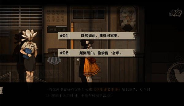 游戏采用双线叙事结构,玩家可分别扮演妹妹与哥哥展开探索。在哥哥线中,玩家需从购物车调查开始,穿越仙人掌区域获取钥匙,最终打开通往下一阶段的大门;而在妹妹线中,则需要摘取向日葵宝宝、与保安对话、进入教室并搜寻书包、储物柜等地点来收集关键道具,如长途旅行宣传页与磁带,从而触发收音机互动并激活彩色环境切换。