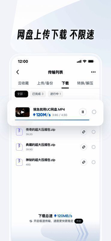 UC网盘不仅提供海量云存储空间,满足从文档到高清视频的多样化存储需求,还通过先进的传输技术确保文件上传与下载过程高效快捷。智能文件分类系统帮助用户快速定位所需内容,提升使用效率。此外,软件支持多版本文件备份,用户可随时恢复至任意历史版本,有效防止数据丢失。