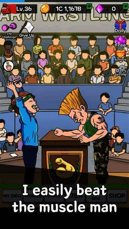 游戏提供丰富多样的可选角色,每位角色都拥有独特的背景故事、外观设计以及专属属性加成。玩家可通过个性化训练系统,针对性地提升角色的力量、速度与耐力,打造属于自己的“腕力之王”。同时,随着等级提升,还能逐步解锁新角色、专属服饰与稀有配饰,自由定制角色形象,展现独特个性。