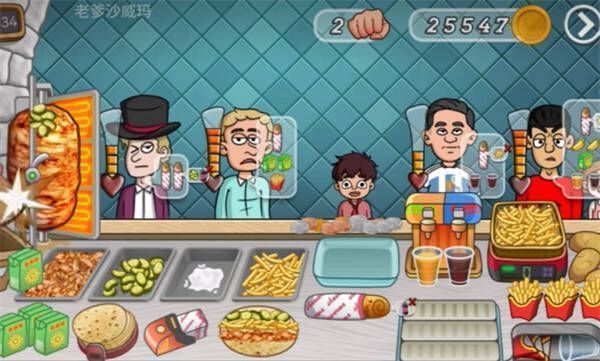 老爹沙威玛是一款充满趣味的休闲益智经营模拟游戏。玩家能在游戏里模拟经营一家烤肉卷饼店,玩法丰富多样。游戏核心是制作并售卖沙威玛卷饼,可花金币升级设备提升制作效果,烤架上的肉需玩家操控刀片割取。游戏左侧“员工”可帮忙上货,右侧有炸薯条机和饮料机。