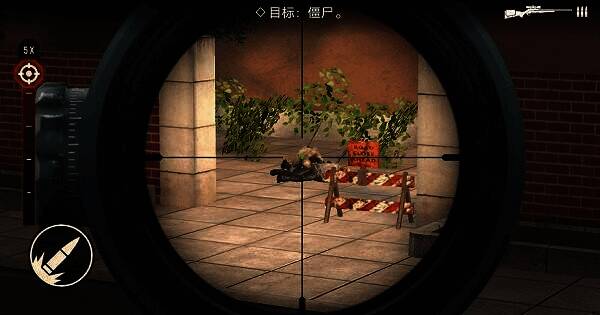1、高空狙击:玩家扮演狙击手,从高空对僵尸展开射击,众多僵尸等待被消灭。