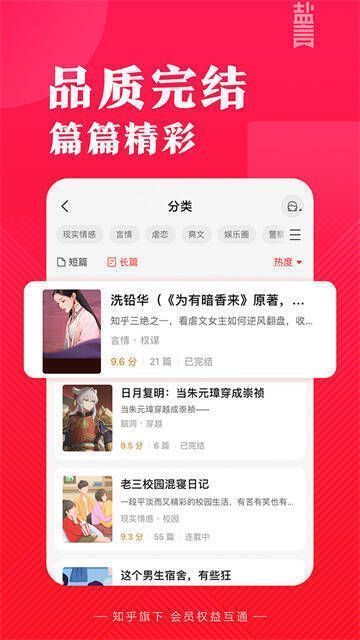 1、质量有保障:依托知乎强大的品牌影响力和严格的审核机制,确保所有网络故事都有较高的文学价值。