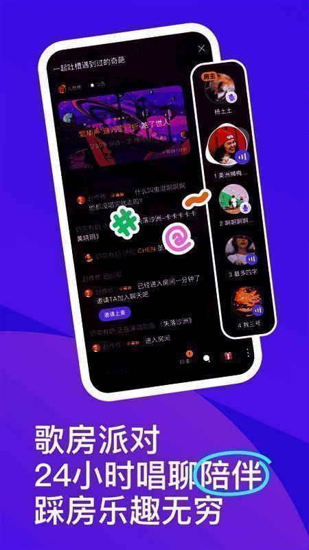 3. 卡拉OK室全天开放,有嘉宾陪伴。无论是唱歌、聊天、抓唱、PK、自由麦,各种功能应有尽有,是24小时不打烊的陪伴空间。