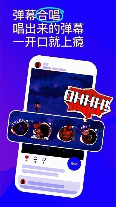 1. 语音弹幕,大规模共创场景,按住唱歌弹幕,即可加入心仪作品,一起歌唱、交流,玩法无限可能!