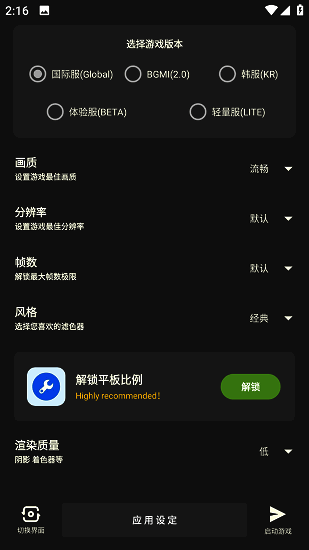 1. 自动保存游戏画质设置,重新加载游戏时可沿用之前的设置。
