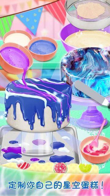 玩家先从多种原材料中选面粉、糖、鸡蛋等基础食材,混合配制蛋糕糊并烘焙,之后按需装饰。借助刮刀、裱花袋等工具,将蛋糕表面装饰成星空图案,加入闪烁的星星、流星等创意装饰。游戏设有多个关卡和挑战任务,玩家需在规定时间内完成指定蛋糕设计,获取评分和奖励。随着游戏推进,可解锁更多食材和装饰工具,提升蛋糕制作能力。