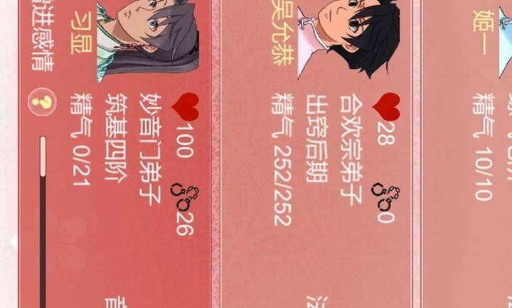 2、第二步,筛选合适的角色。要确保角色没有心上人或道侣,且没被异性救过,男性好感度不超70(建议控制在60以下)。若有伴侣,可除掉对方,但要等其放下感情后再介绍新对象。修为高的夫妻生育概率低,优先选低阶修士。