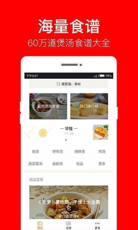 煲汤食谱是一款备受欢迎的免费美食教学软件。它有丰富多元的美食食谱供用户查看,还具备细致的食谱分类,涵盖家常菜、西餐、蛋糕等,方便用户自由挑选,能让用户随时随地在线学习,快速提升厨艺,带来全方位的学习服务与体验。美食内容均以视频呈现,教学极为详细,助力用户掌握烹饪技巧,满足使用需求,还支持用户收藏心仪美食进行制作。