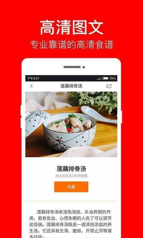 这款软件能轻松提供各类美食做法,有详细的做菜视频和文字过程,方便用户学习查看。还有智能推荐功能,可推送美食供用户自由学习做菜,还能自由收藏美食。