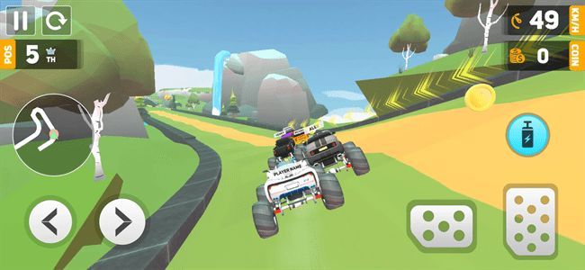 玩家通过虚拟摇杆控制车辆进退和转向,按跳跃按钮可完成空中翻滚等特技躲避障碍。每个关卡有不同挑战目标,玩家要避免翻车碰撞,快速安全完成任务挑战最佳成绩。可通过完成任务、收集金币或参赛解锁新车并提升性能,还能自由选择单人挑战、时间竞速等模式。