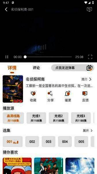 4、点击作品封面进入详情页,能看到作品简介、播放源和选集。