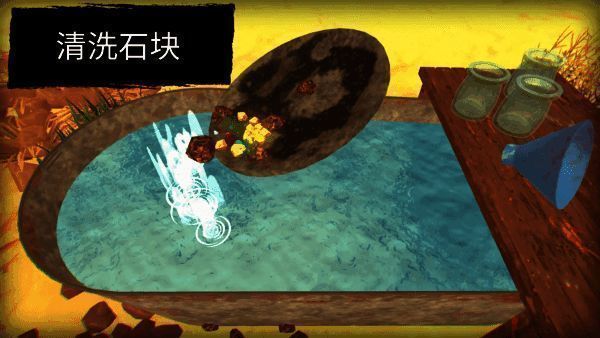 3. 用木桶收集挖掘出的矿石,清理掉泥土,提取黄金。