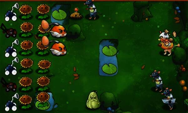 2、利用多种植物搭配阵容,阻挡老鼠进攻,每种植物技能作用独特。