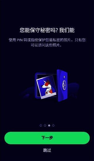 - 照片库能用 PIN 码、图案或指纹密码保护照片,照片移入保管库后会完全加密,仅用户可访问。
