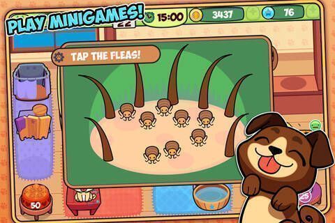 1、宠物店中宠物右边有心情标记,给宠物洗澡时其他宠物在等待区,头上会显示想要的玩具物品。