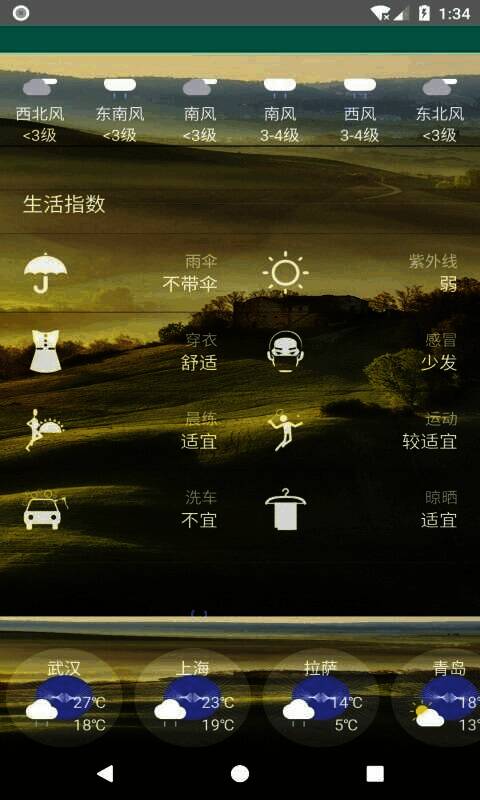 2、用户可随时查看当前温度、湿度、风向等详细信息,了解当天天气。