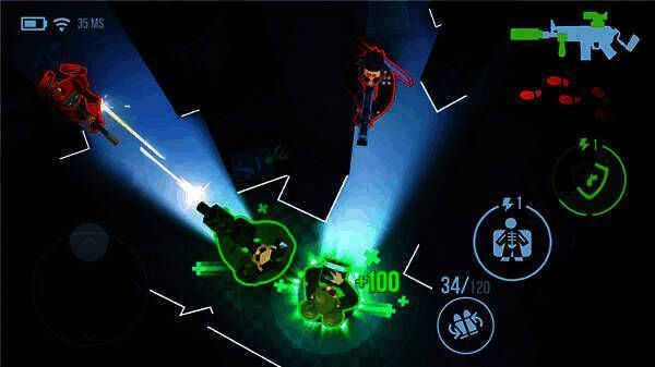操作简单,左摇杆控制移动,右按钮完成装填等操作。游戏采用上帝视角,黑暗环境中每一步都紧张刺激,要靠手电筒和声音定位敌人,再安排战术。提供多种模式,战斗可获奖励解锁内容。喜欢就赶紧下载体验!