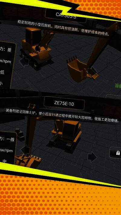 2、多种挖掘机可选,每辆操作特点不同,满足各种任务需求。