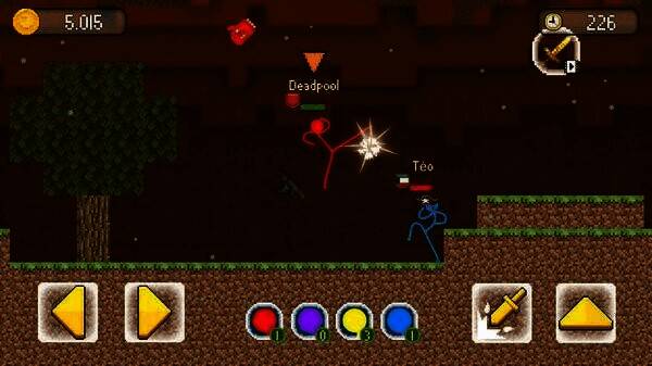 1、玩家通过虚拟摇杆和按钮控制火柴人角色进行移动、攻击、防御及释放特殊技能。